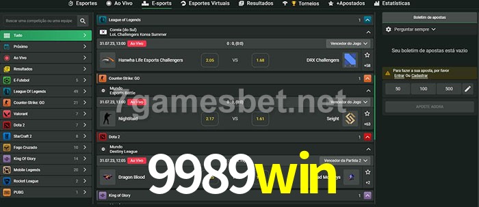 O 9989win oferece uma grande seleção de opções de apostas em e-sports com probabilidades competitivas